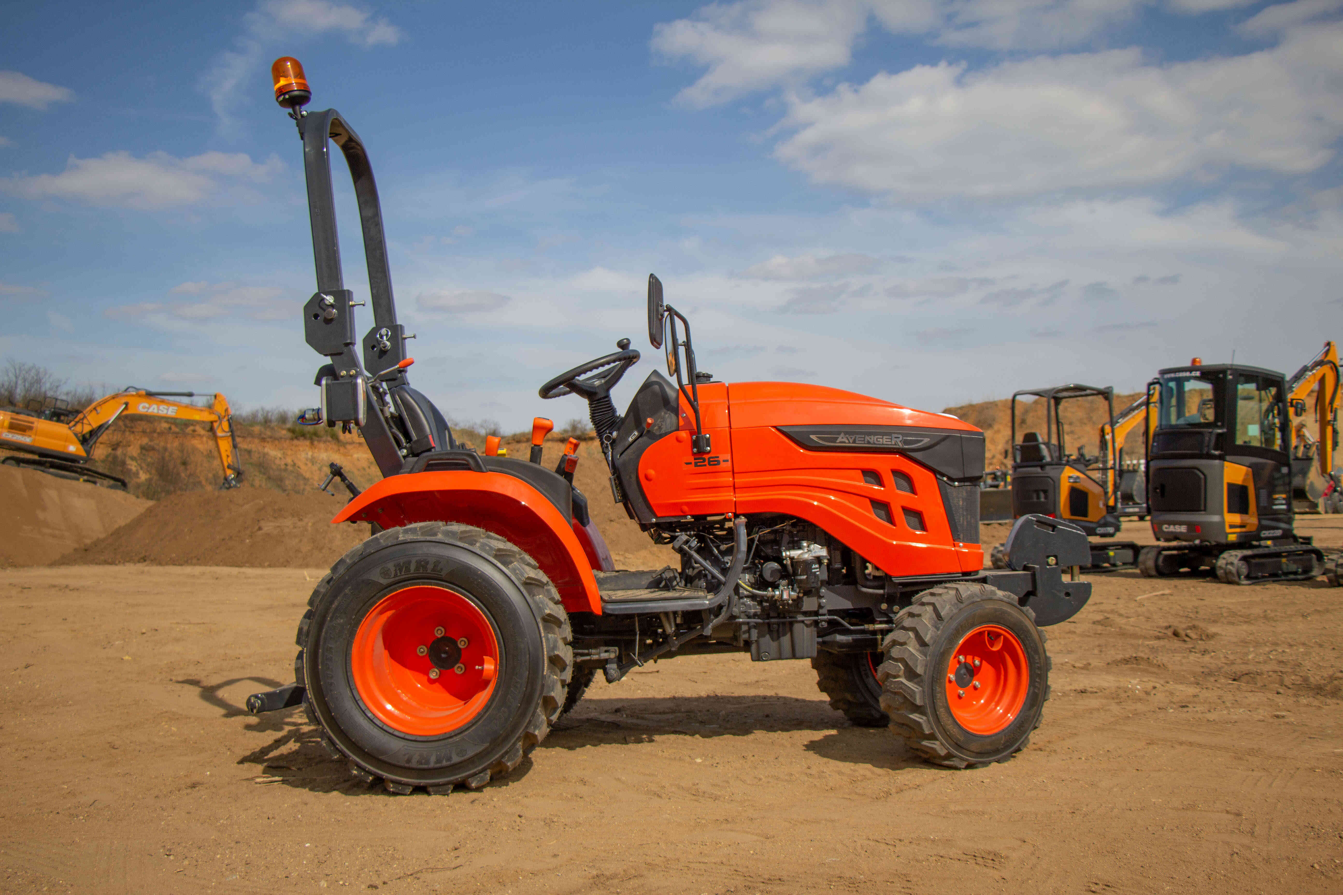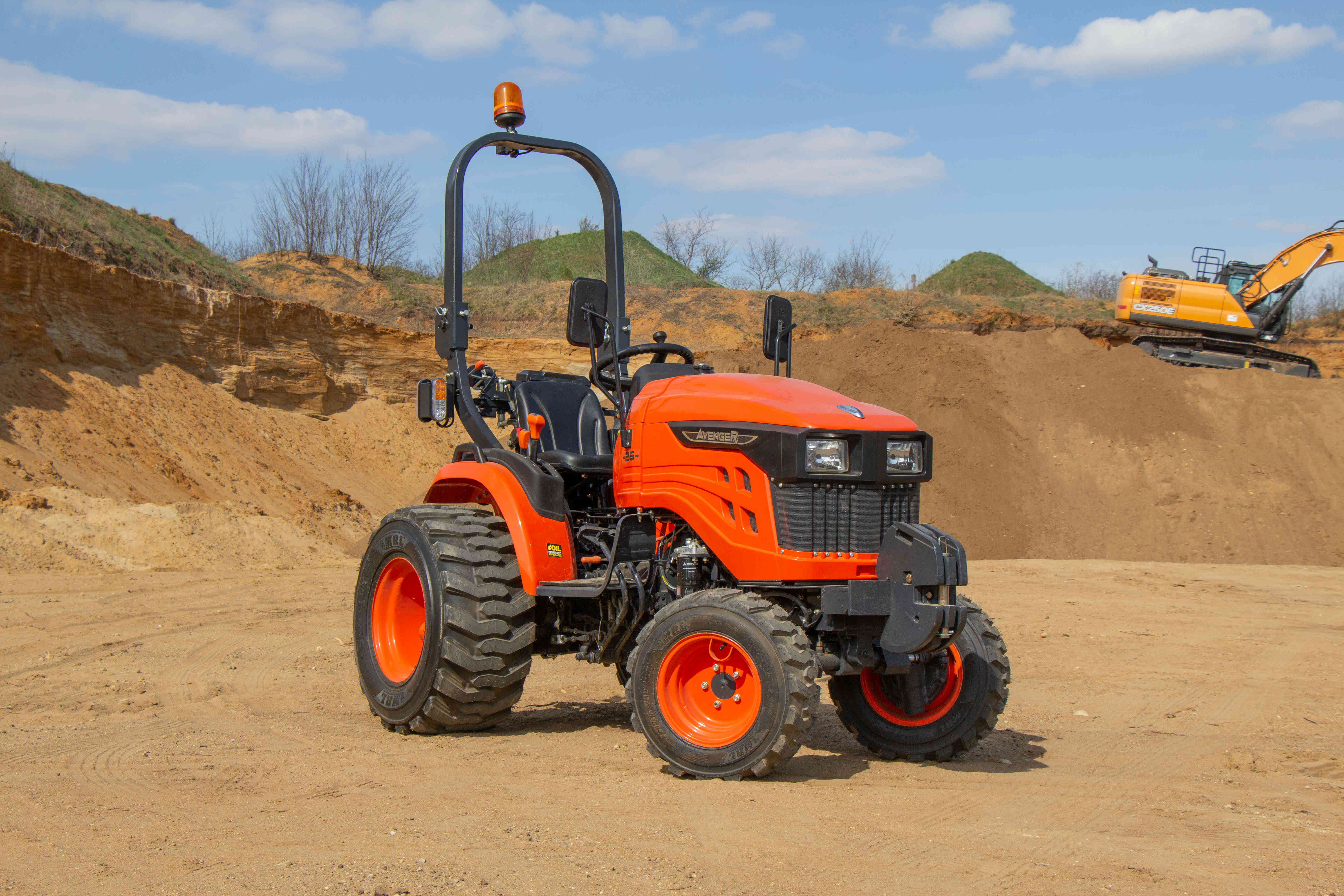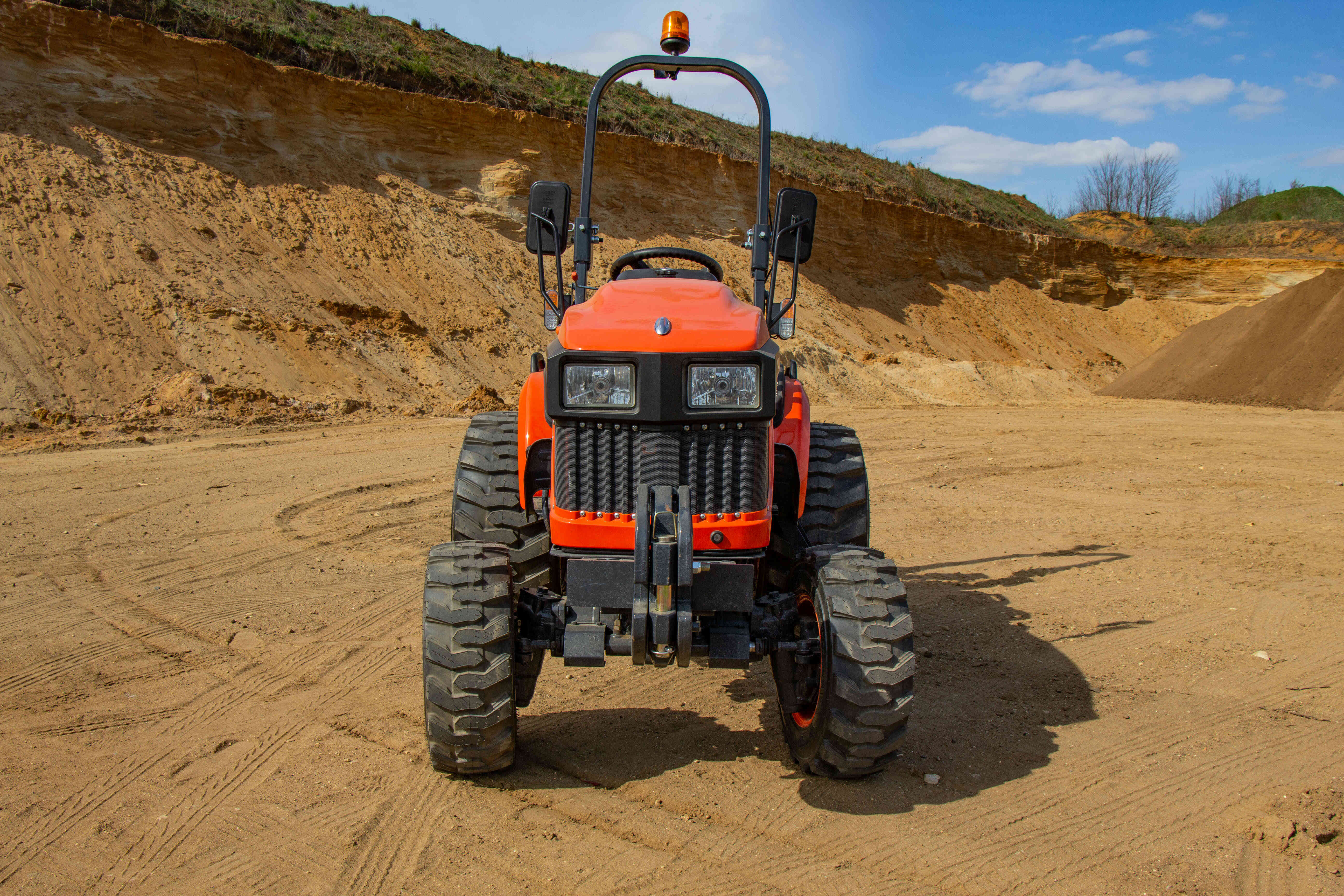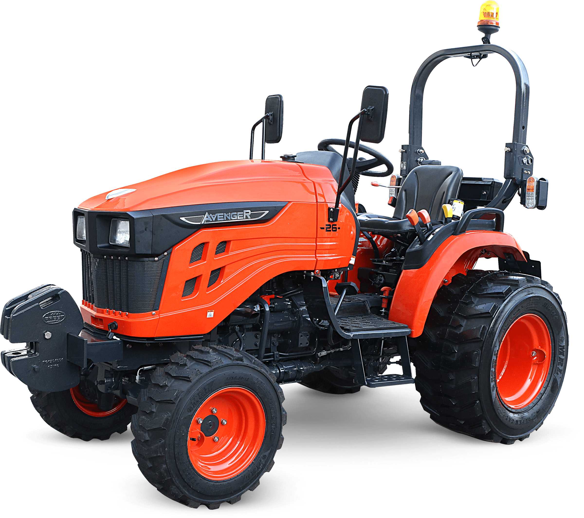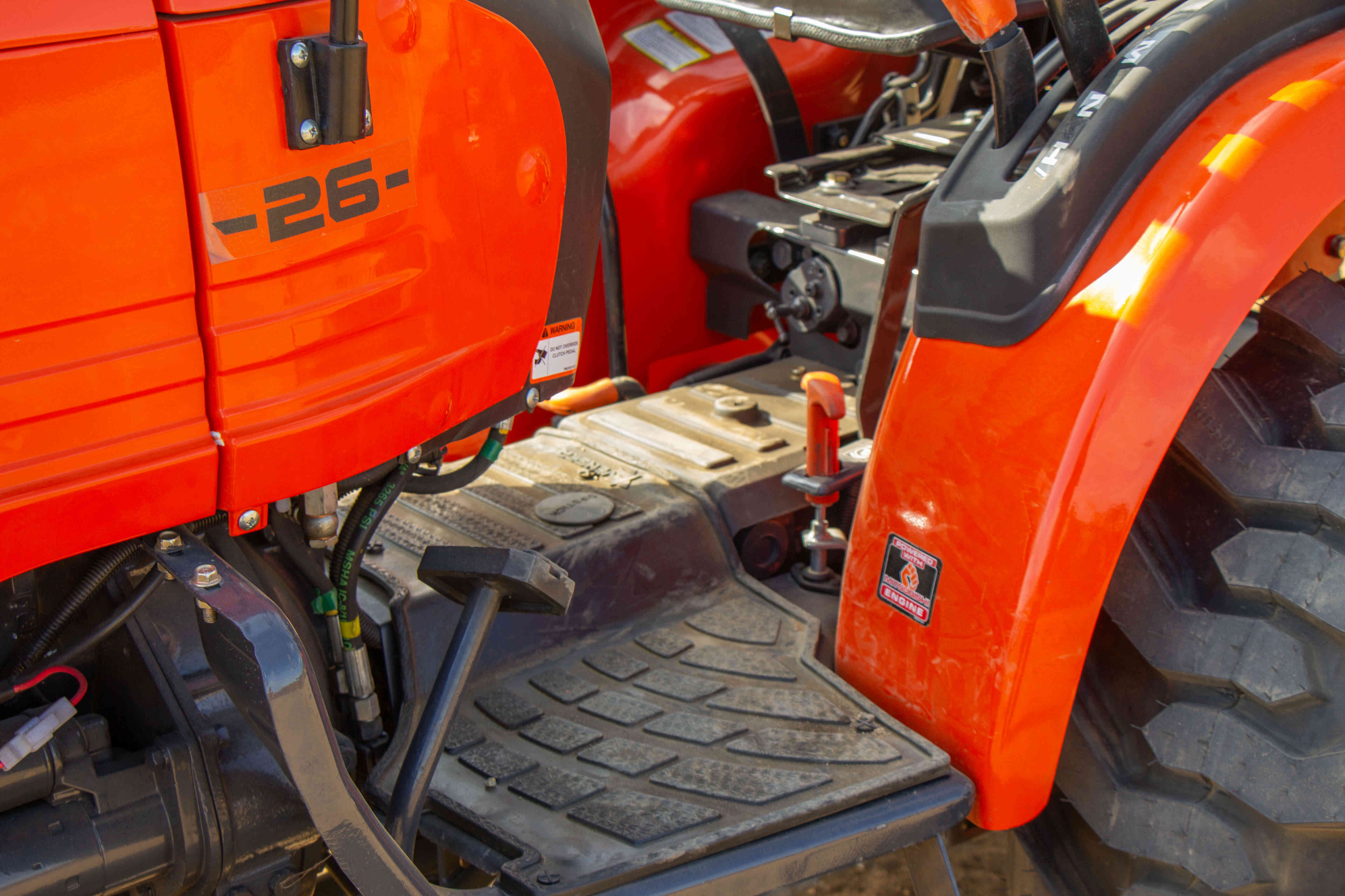 Nepřehlédnutelnou součástí traktoru je ochranný rám ROPS, který má za úkol Vás ochránit v případě převrácení. Výbava tohoto traktoru zahrnuje digitální displej s ukazatelem otáček motoru, motohodinami a informativními kontrolkami, které například ukazují teplotu chladící kapaliny a stav ruční brzdy nebo hladinu paliva v nádrži. Dalšími prvky výbavy jsou odpojovač baterie, 7-pólová zásuvka pro vozík, kastlík na nářadí, ruční i nožní plyn, zadní pracovní světlo a zásuvka na 12V.