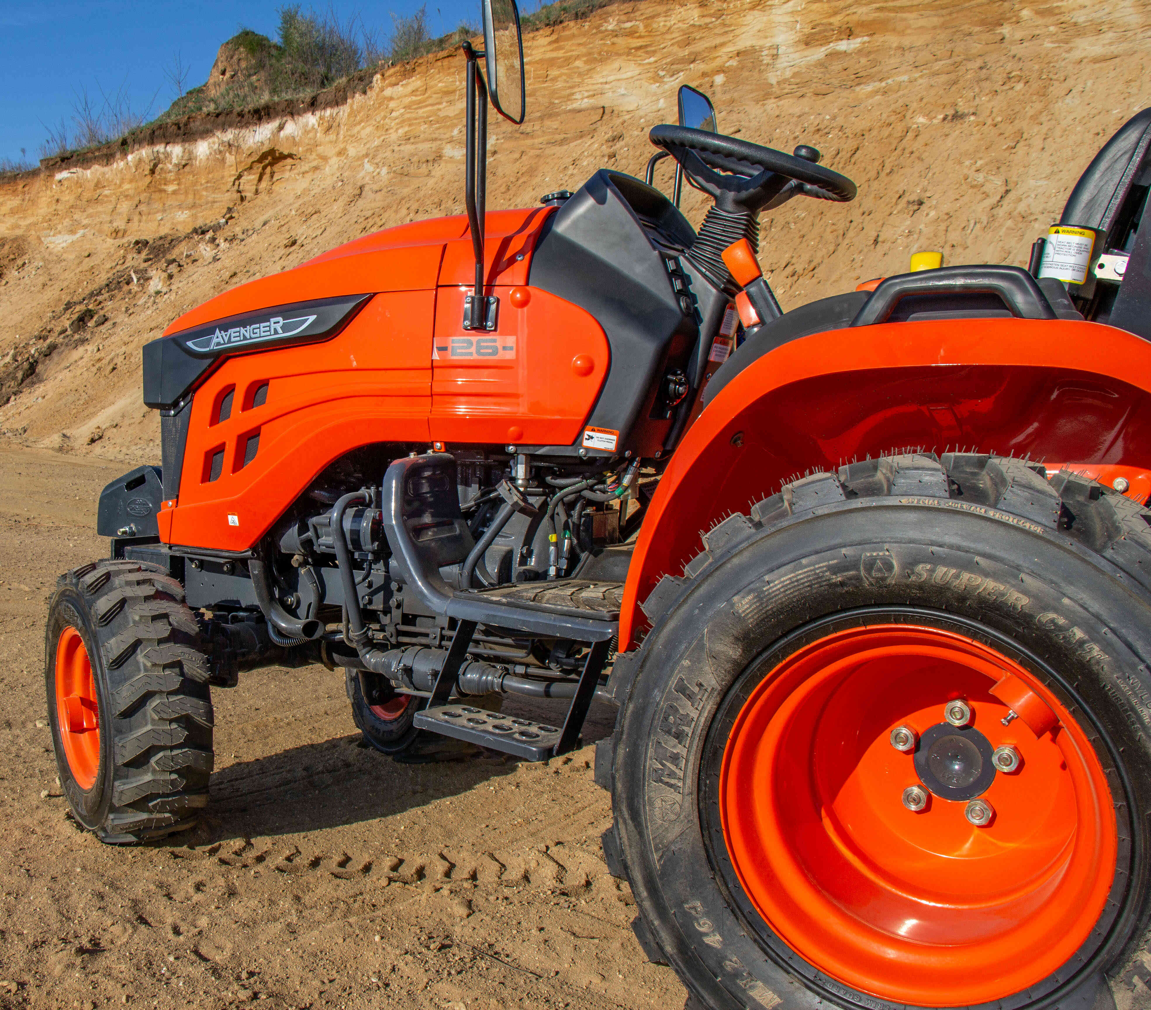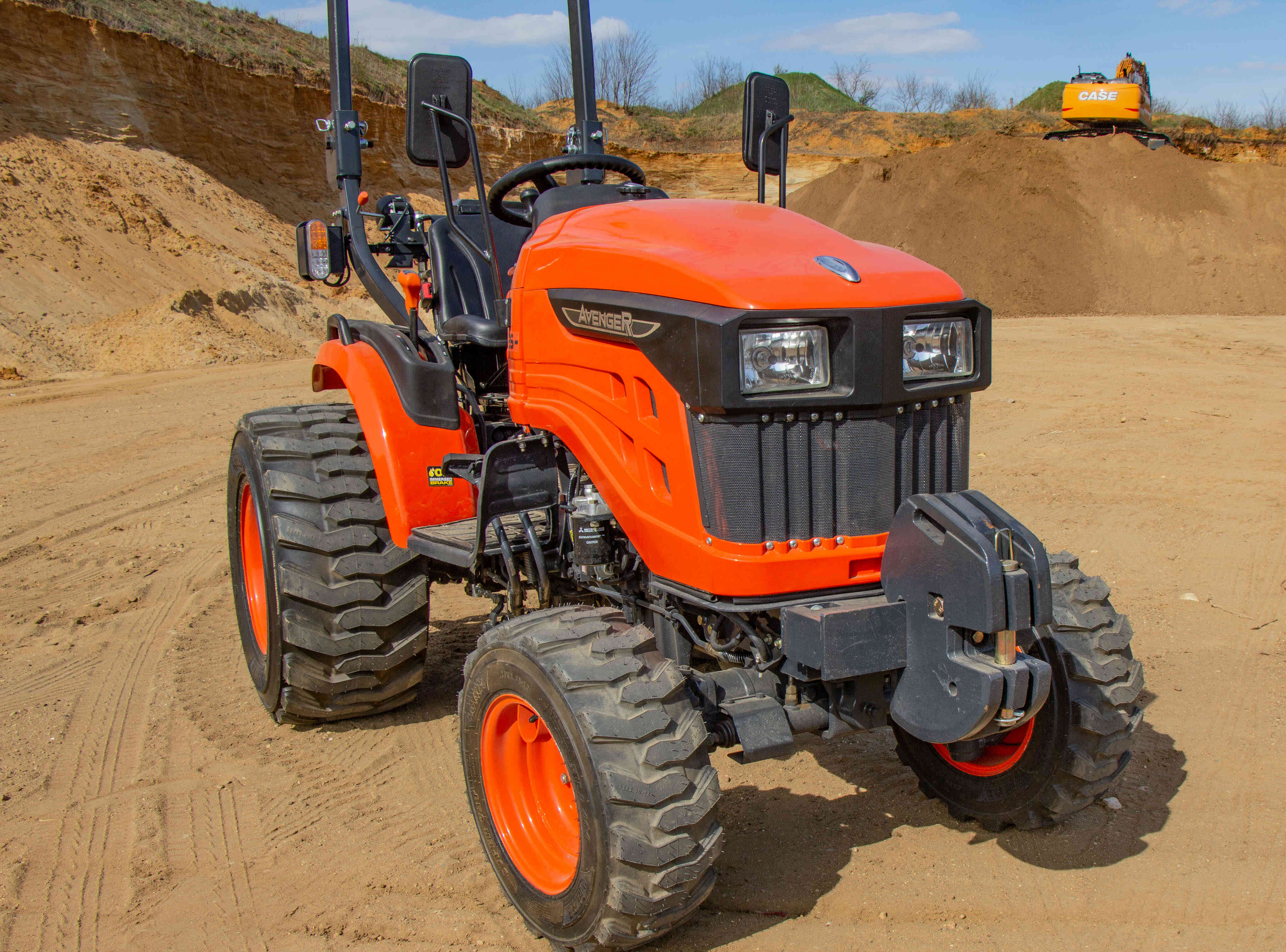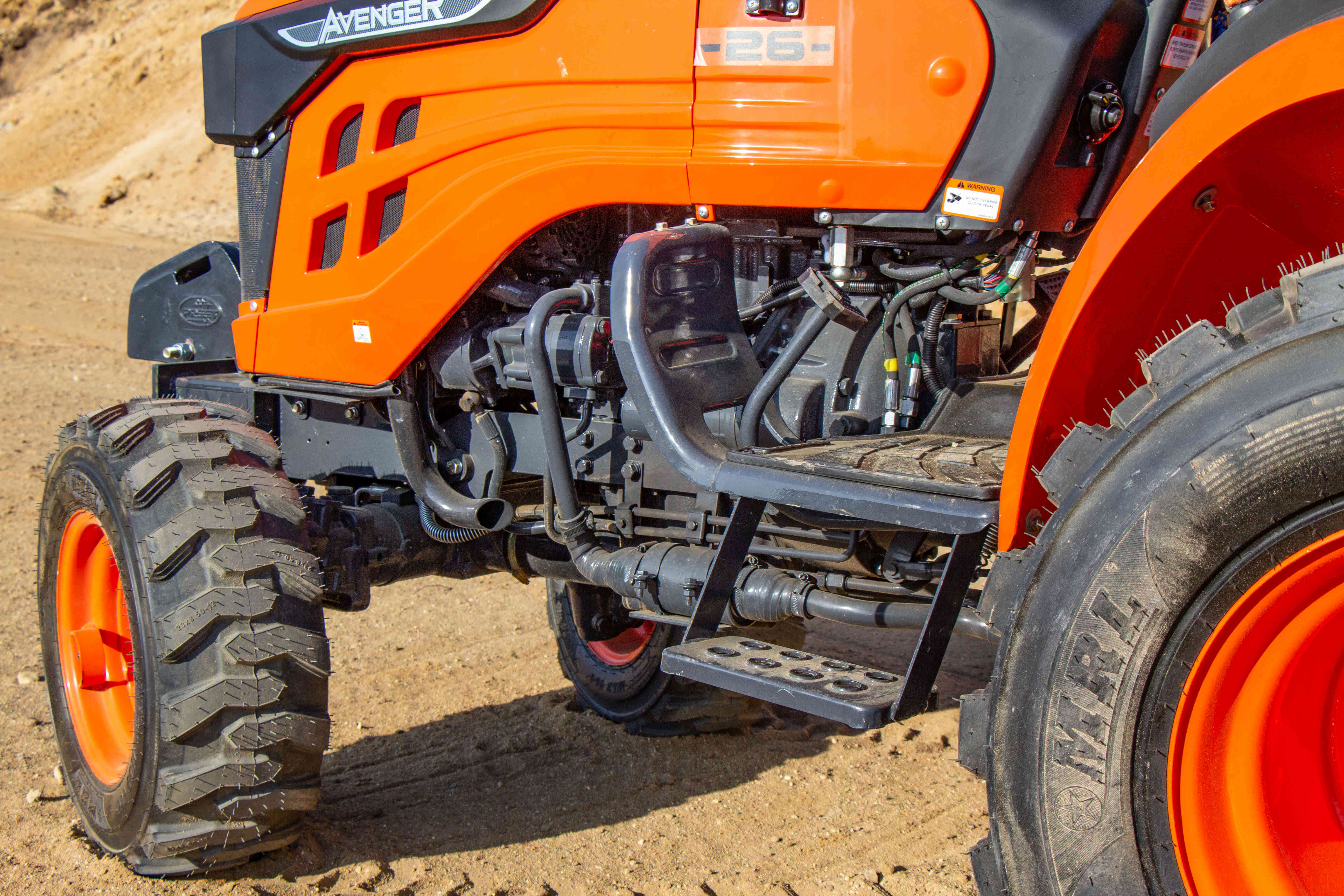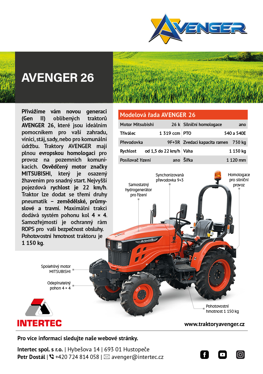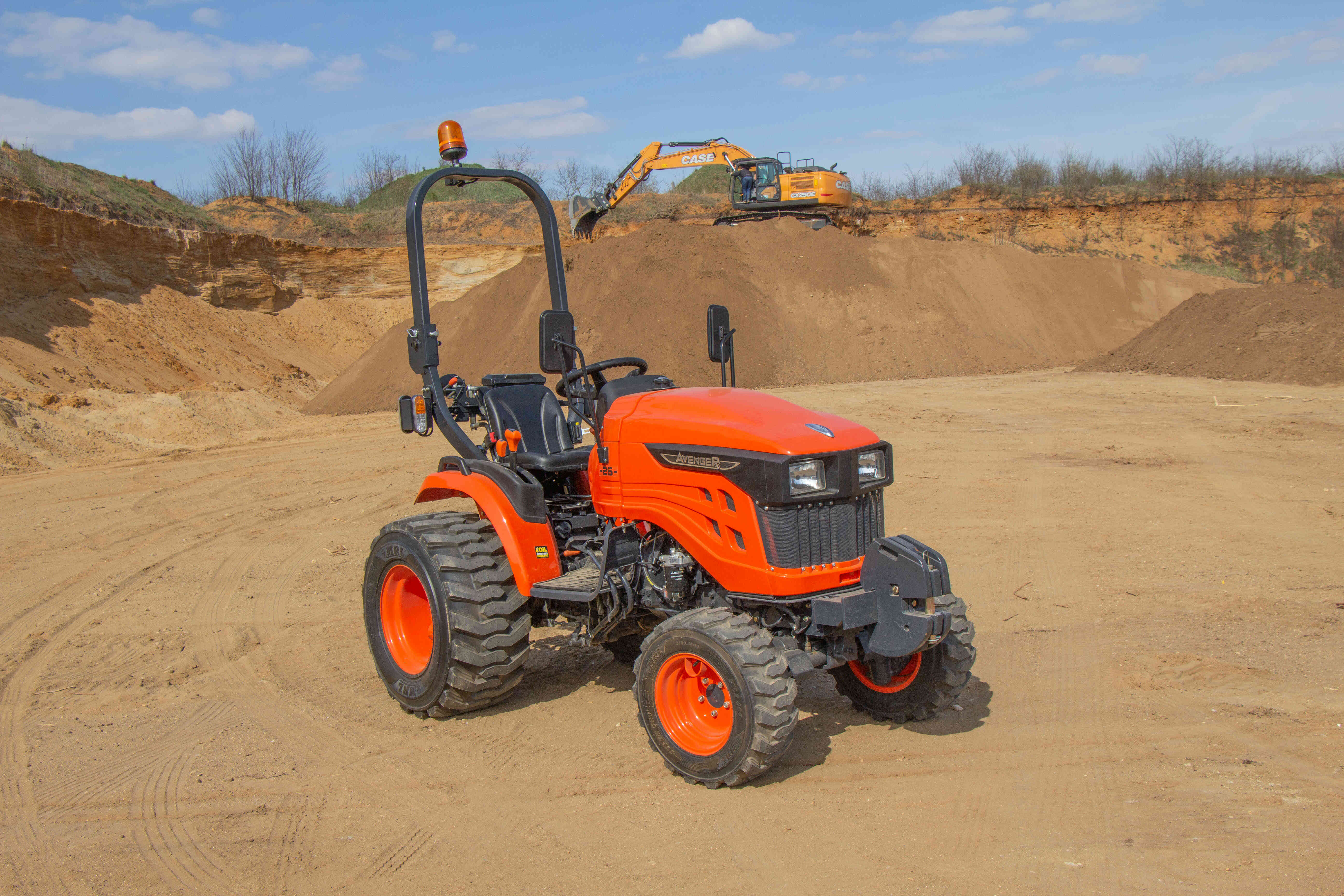 Nepřehlédnutelnou součástí traktoru je ochranný rám ROPS, který má za úkol Vás ochránit v případě převrácení. Výbava tohoto traktoru zahrnuje digitální displej s ukazatelem otáček motoru, motohodinami a informativními kontrolkami, které například ukazují teplotu chladící kapaliny a stav ruční brzdy nebo hladinu paliva v nádrži. Dalšími prvky výbavy jsou odpojovač baterie, 7-pólová zásuvka pro vozík, kastlík na nářadí, ruční i nožní plyn, zadní pracovní světlo a zásuvka na 12V.